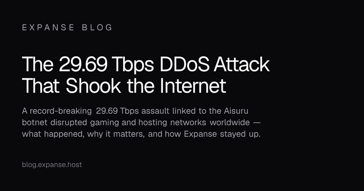 While several networks experienced partial degradation during the Aisuru incident, Expanse’s infrastructure remained stable and unaffected. Our current defense stack using G-Core / GSL global filtering successfully handled related traffic without downtime.